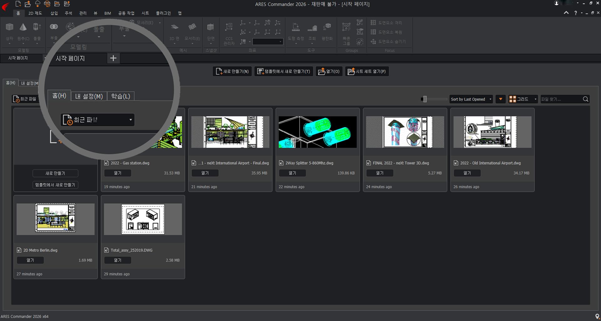 최근 작업을 확인할 수 있는 옵션을 통해 사용자는 지속적인 설계 개선을 촉진하고, 진행 중인 프로젝트를 정확히 이전에 작업한 지점에서 재개할 수 있습니다. 개인 작업이든 팀 작업이든 효율적이고 중단 없는 진행이 가능합니다. |