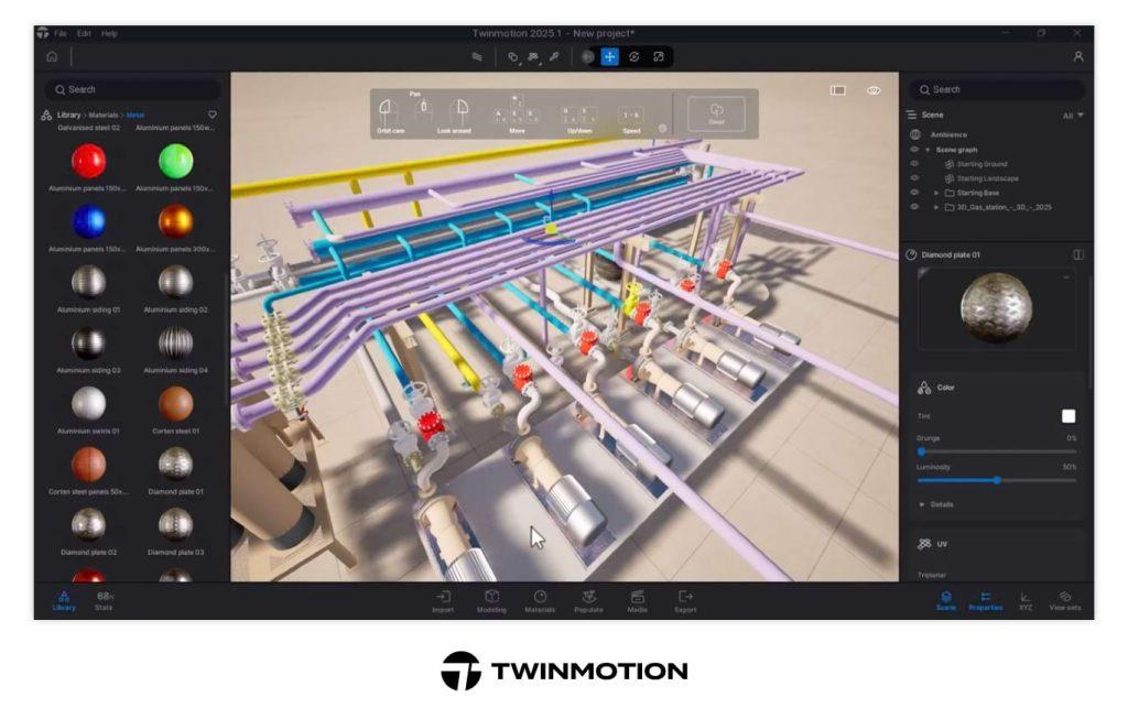 | Twinmotion에서 CAD 모델의 3D 렌더링EXPORTDATASMITH 명령어를 통해 ARES Commander 사용자들은 이제 DWG 콘텐츠를 Datasmith 형식으로 내보낼 수 있으며, 이를 Twinmotion과 같은 실시간 렌더링 도구에서 열 수 있습니다. Twinmotion은 조명, 재료, 비디오 생성 등을 위한 다양한 옵션을 제공하며, 특정 사용자에게는 무료 버전도 제공됩니다.